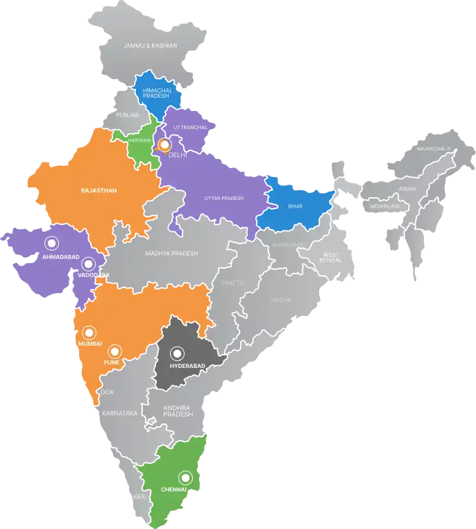 We have regional offices located in Mumbai (Head office), Delhi, Ahmedabad, Vadodara, Pune, Hyderabad, Chennai. Each one of our regional offices is equipped with dedicated service engineers focused on providing 24 Hours of online support and onsite support within 48 Hours.